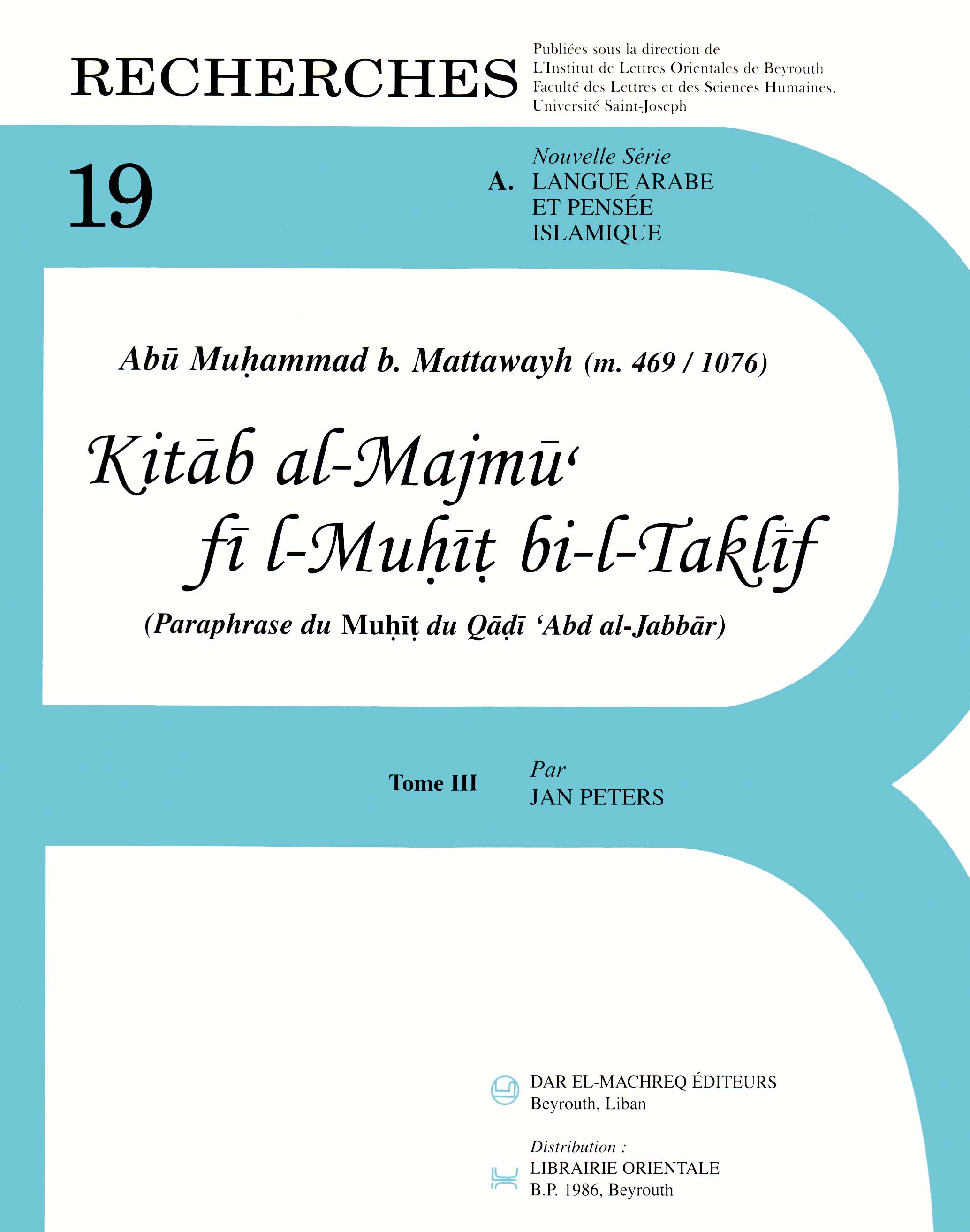 ثالث إصدارات كتاب المجموع في المحيط بالتكليف، مؤلَّف من مجموعة أبواب تحتوي الحديث عن عدّة أمور من وجهة نظر مذاهب المجبرة والثنويّة والبكريّة