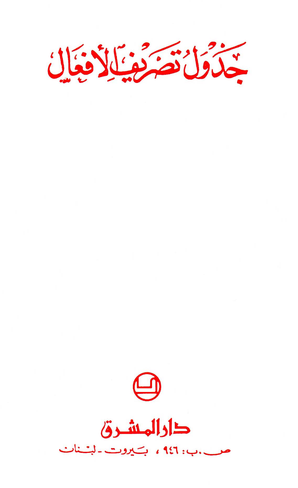 يحوي الكتاب جدول تصريف أكثر من عشرين فعل: الأفعال المجرّدة والمزيدة ومشتقّاتها، الفعل السالم، المضاعف، المهموز الفاء، المهموز العين، المهموز الام، المثال الواويّ واليائيّ، الأجوف الواويّ واليائيّ، الأجوف من وزن فَعِلَ يَفْعَلُ، الناقص الواويّ واليائيّ، اللفيف المفروق والمقرون، المهموز الفاء والأجوف والناقص، وغيرها من الأفعال